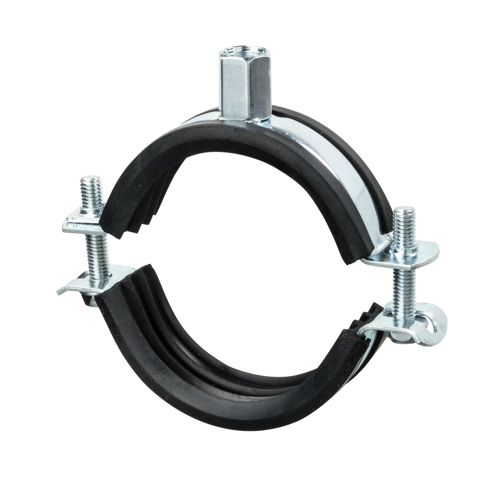 Rørbøjle med dobbeltgevind, gummiindlæg og quicklås til nem og sikker montering.