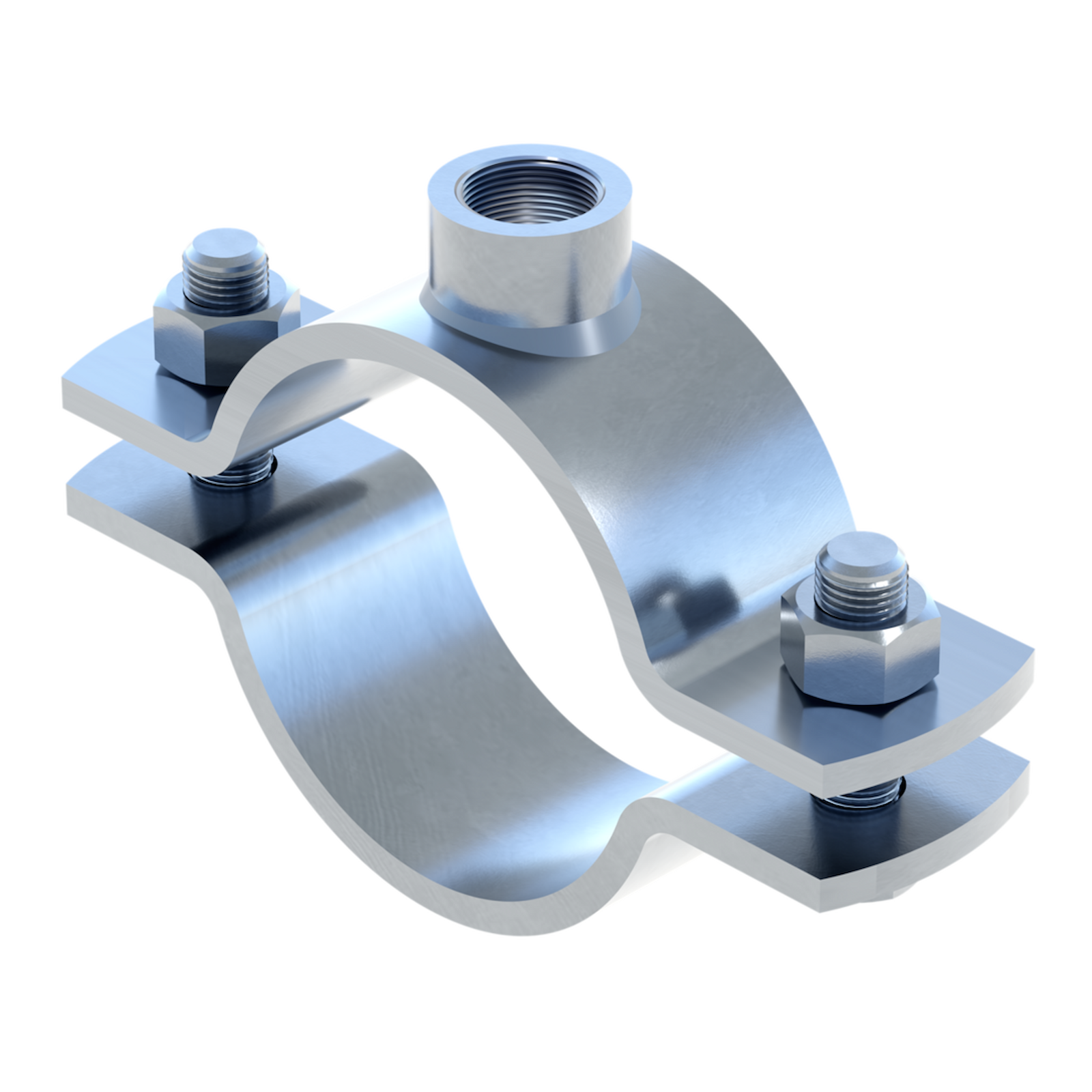 Todelt, tung rørbøjle til industrielle installationer med høj korrosionsbeskyttelse (HCP).